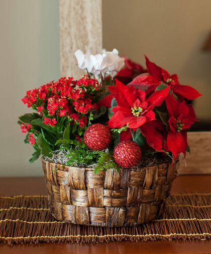 REGALA ESTA CESTA NAVIDEÑA CON COMPOSICIÓN DE PLANTAS DE TEMPORADA.