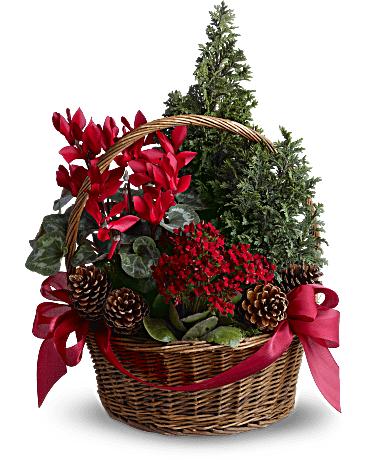REGALA ESTA CESTA NAVIDEÑA CON COMPOSICIÓN DE PLANTAS DE TEMPORADA.